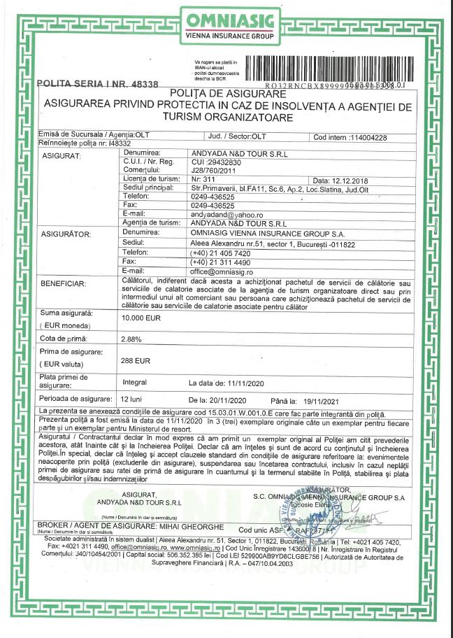 Brevet de turismLicenta de turismPolita de asigurare